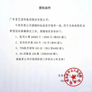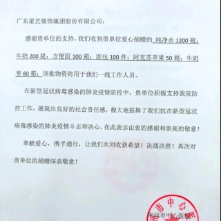 又一批,发往武汉……又一批,发往黄冈……又一批,发往宜昌……又一批,发往荆州……一、抗击疫情,星艺在行动2月27日,广东星艺装饰集团向湖北荆州市沙市区慈善总会、湖北荆州市中心医院捐赠牛奶、面包、苹果、方便面等爱心物资驰援抗疫一线。大爱星艺,共同战“疫”。从星艺装饰“爱心接龙”开启以来,星艺全国各单位