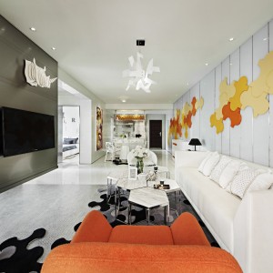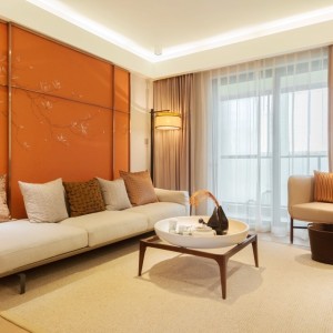 126㎡轻奢三居,一抹柔情,半抹橙