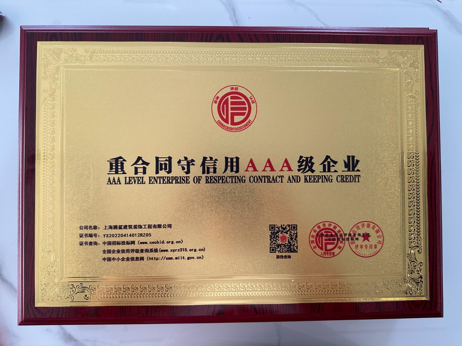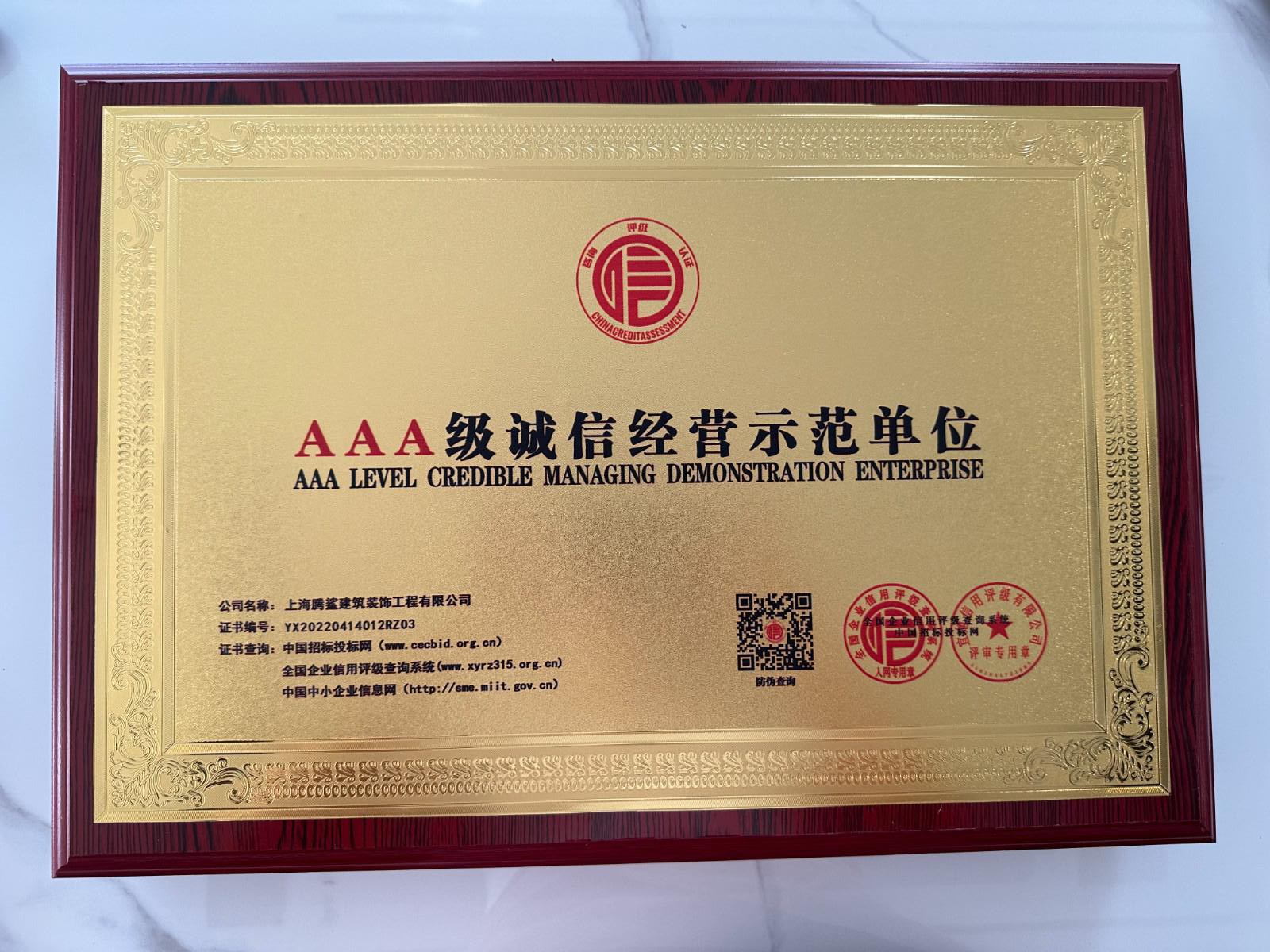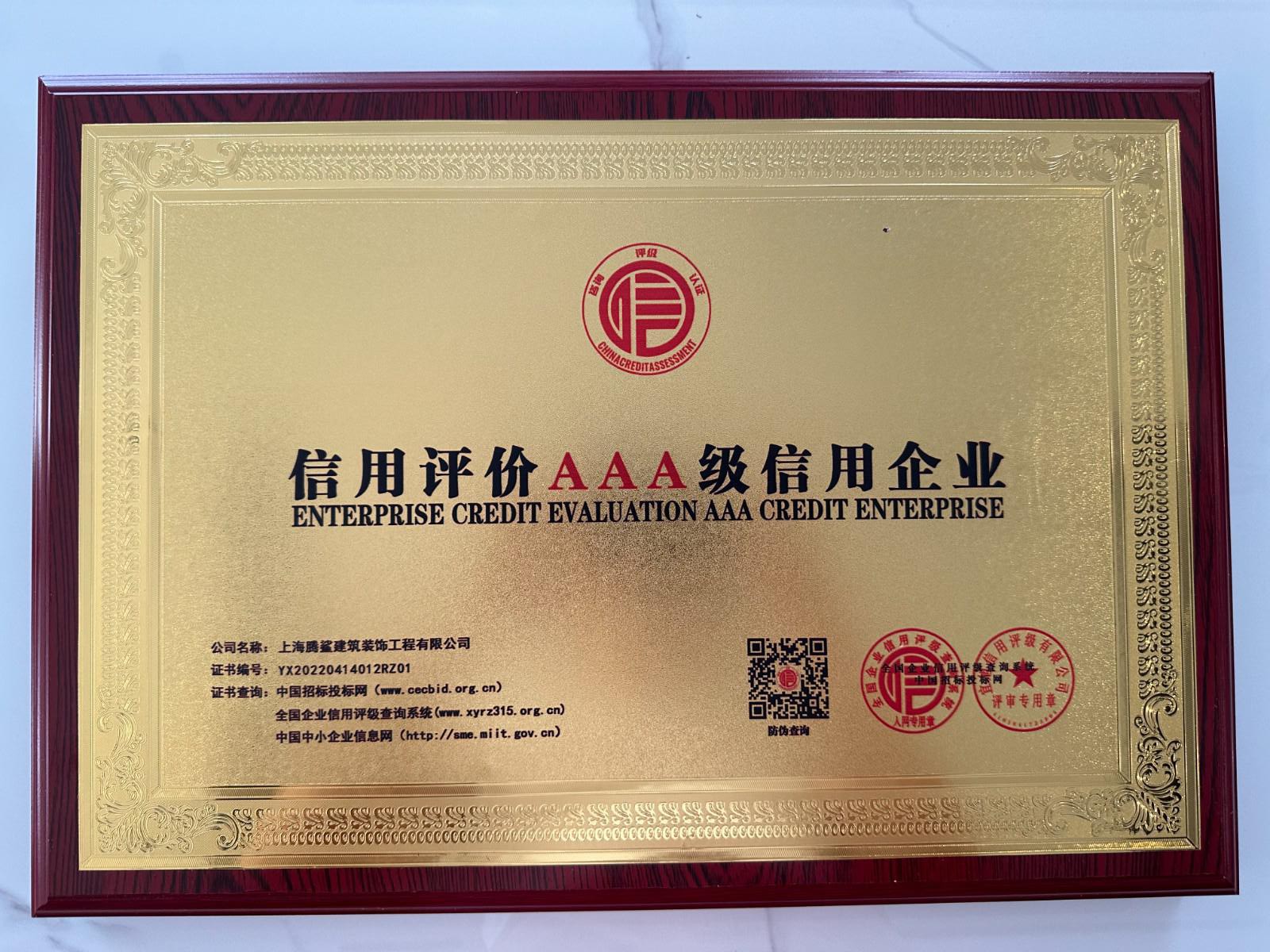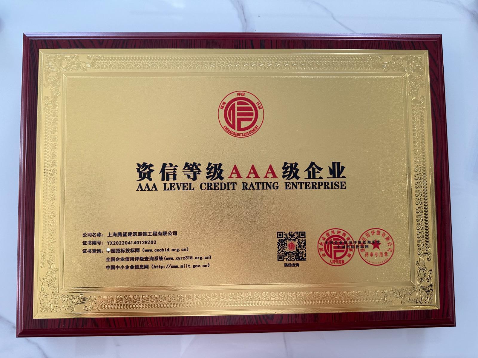 资信等级AAA级企业