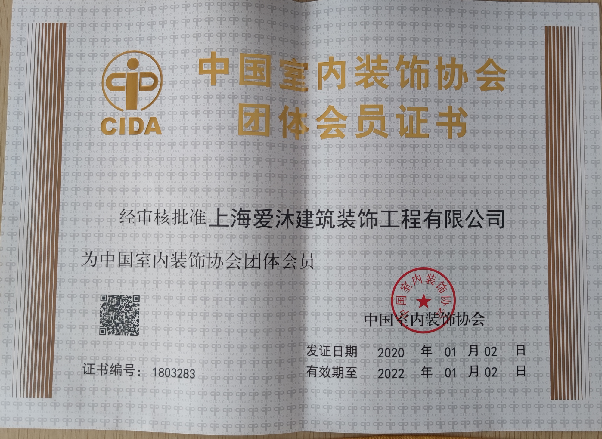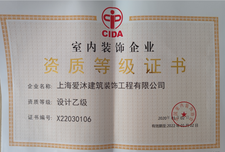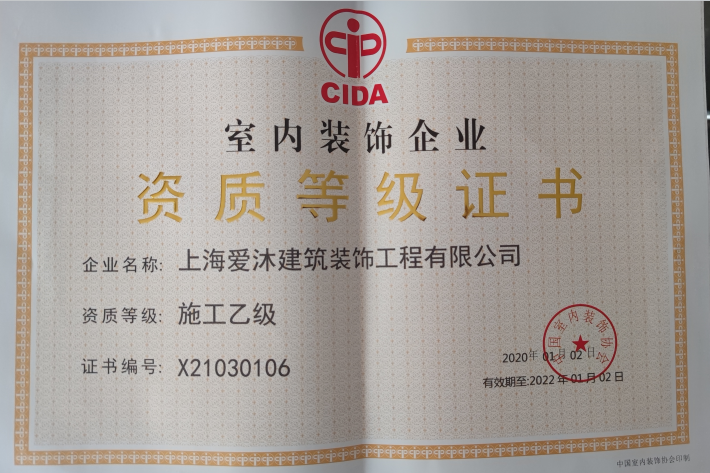 上海爱沐建筑装饰工程有限公司企业证书