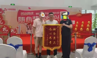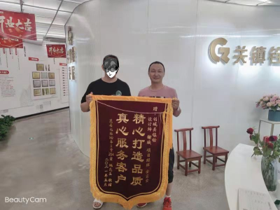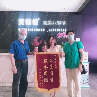 2022年10月13日关镇铨嘉定店(嘉定花都荟中心)虹口区赤峰路客户亲自到关镇铨整装大融城旗舰店赠送锦旗,表扬关镇铨整体服务团队,客户对设计师的设计方案非常满意,项目经理曹建中施工中用心专业,能够处身设地的为客户照相,特赠锦旗,表达对公司整体的服务表示肯定!