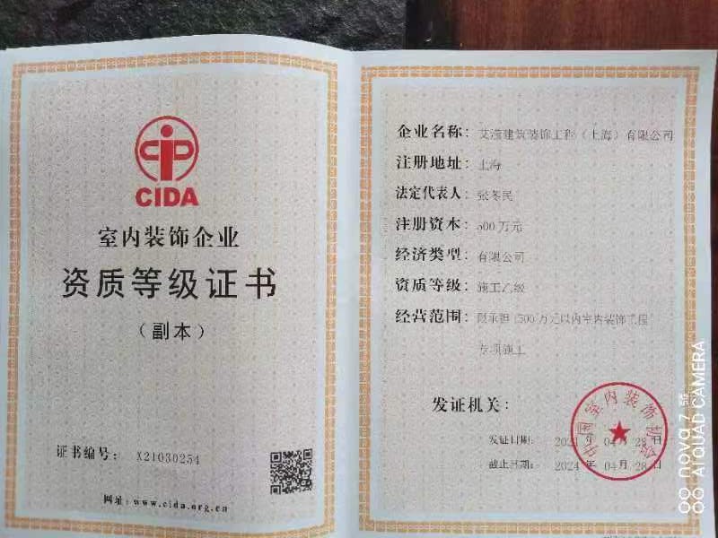 艾滢建筑装饰工程(上海)有限公司企业证书