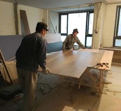 2020年12月,极家精装工地探访小分队要打卡的是一家叠墅户型的工地,所在楼层需要刷卡才能到达,幸得有工人师傅的引领,我们才得以顺利进入。和其中一位木工师傅沟通后得知,这两位师傅竟然是一对父子,细看之下,二人都是清秀的面貌,的确有几分相似。56岁的父亲从事这行已经30多年了,手艺高超,是受人尊敬的“