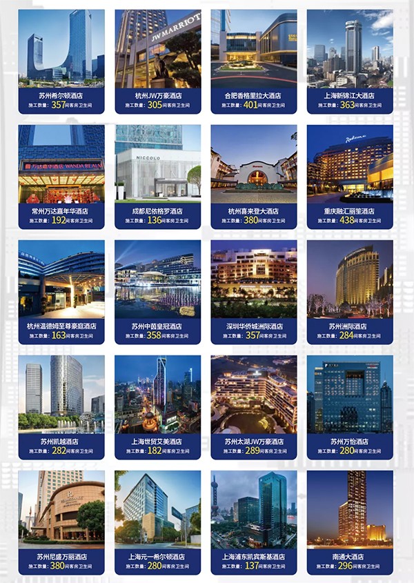 闪电优家先后服务了包括洲际(豪华五星级)、JW万豪(豪华五星级)、香格里拉、深圳瑞吉(奢华五星级)、喜来登、尼依格罗、中茵皇冠、万豪、希尔顿、融汇丽笙、新锦江、万达嘉华、全季、汉庭、布丁等众多国际五星级、快捷连锁品牌酒店在内的563家单位。63576间施工案例,至今,无一返修!这对传统防水行业,尤其是卫生间渗漏修缮领域,无疑是重塑传统,树立“新标杆”。