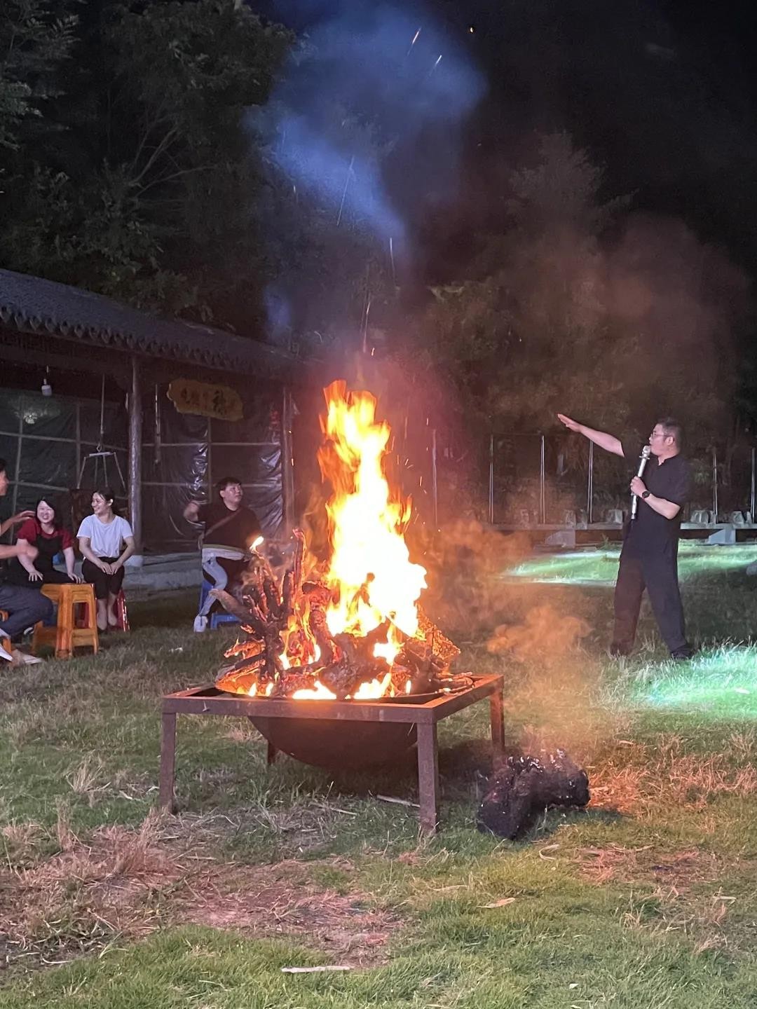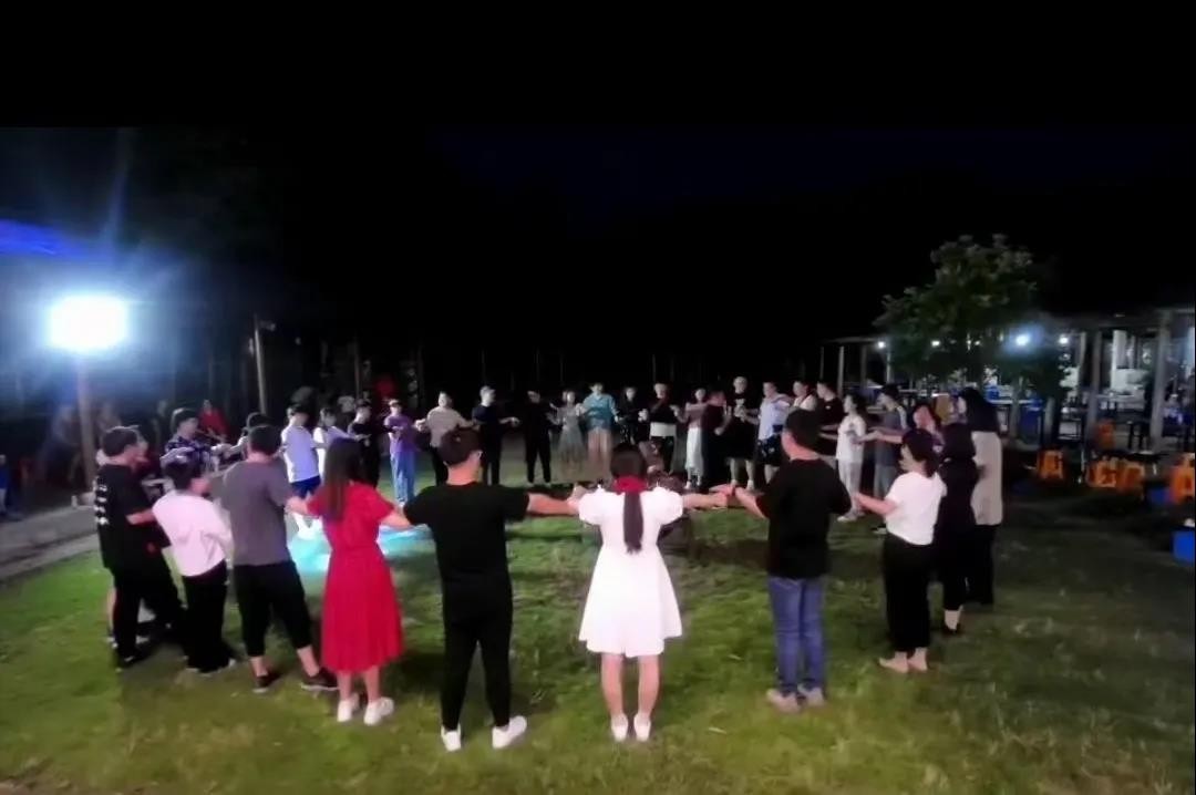 欢声笑语中大家各司其职,忙得不亦乐乎~烧烤之后到了大家最期待篝火晚会环节!点燃篝火,小伙伴们围绕篝火跳舞、唱歌、玩游戏!