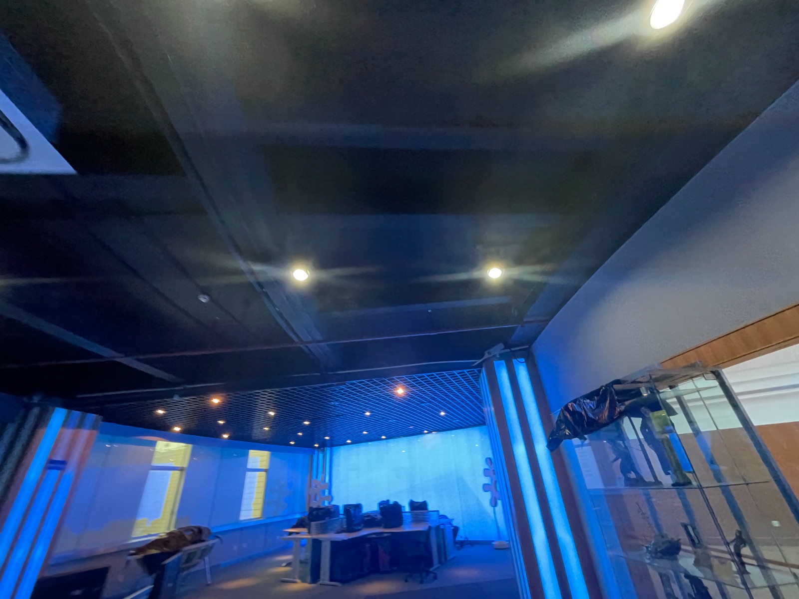 2023年6月参与工装旧屋改造,对原有破损墙壁进行改善与休憩,打造科技炫彩空间,在原有的基础上,合理划分功能需求,满足使用人群的需求,更好的合理利用空间。