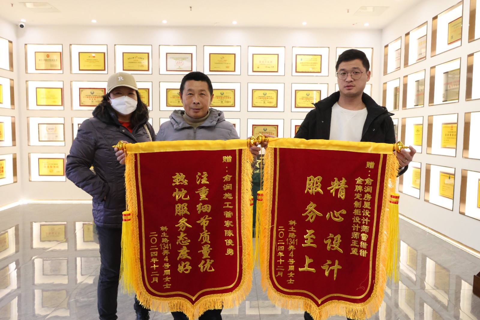 在装修的漫漫征途中,每一次为客户打造理想家园,都是一场用心的奔赴。这次,[客户姓名]送来了锦旗,那鲜艳的红色,如同我们炽热的服务之心,在公司里熠熠生辉。