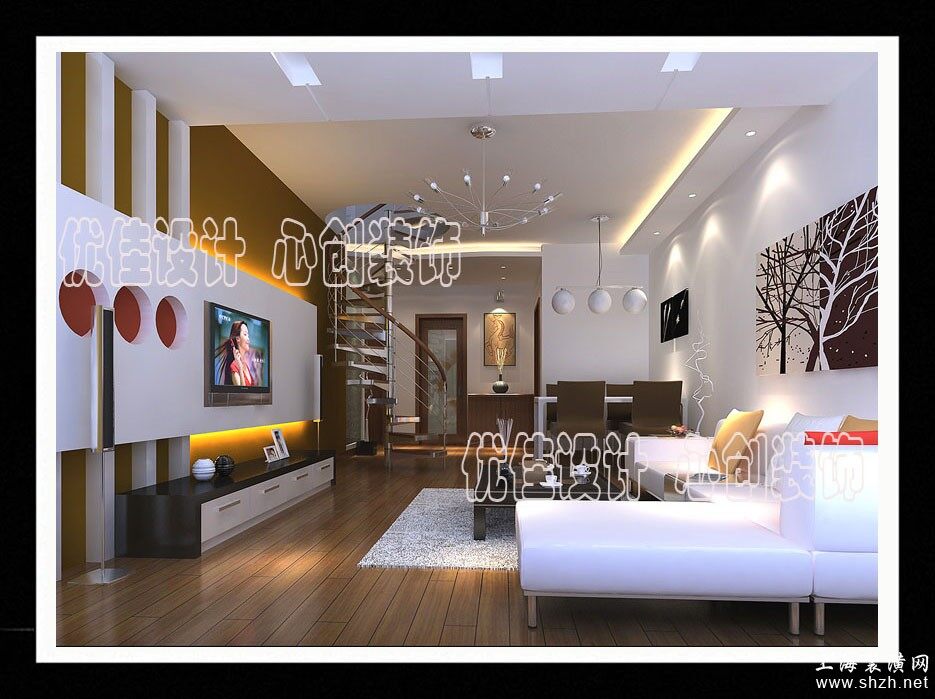 电视背景墙运用凸起的特色装饰板,并配以虚光