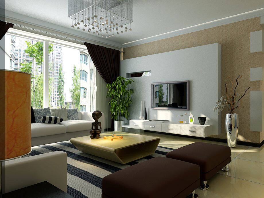 现代简约二居室客厅背景墙装修效果图-default