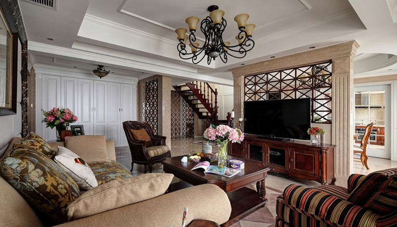 客厅设计装修效果图 - 新中式风格主要包括两方面的基本内容,一是中国传统风格文化意义在当前时代背景下的演绎; 一是对中国当代文化充分理解基础上的当代设计。新中式风格不是纯粹的元素堆砌,而是通过对传统文化的 认识,将现代元素和传统元素结合在一起,以现代人的审美需求来打造富有传统韵味的事物,让传统艺术在 当今社会得到合适的体现。