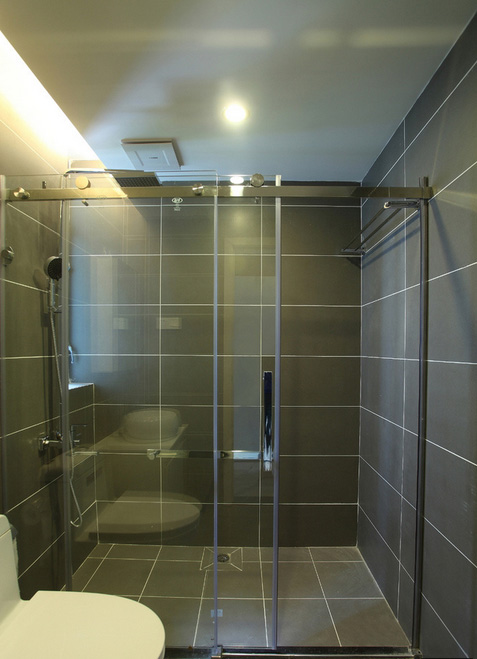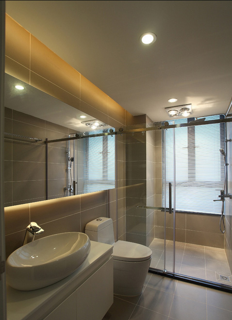 卫生间 - 灰色的墙砖令整个卫生间宽阔明亮。
