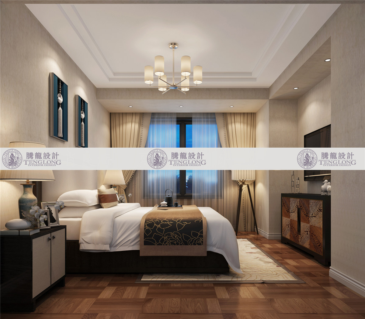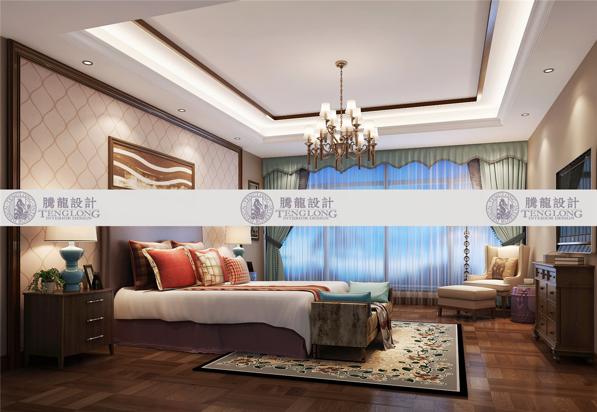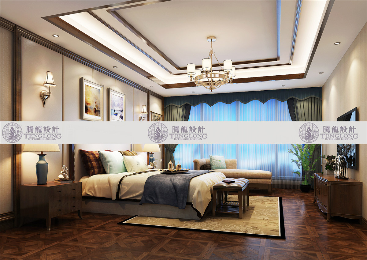 浦发博园主卧 - 浦发博园别墅户型装修新中式风格设计方案展示,上海腾龙别墅设计师曹晖作品,欢迎品鉴