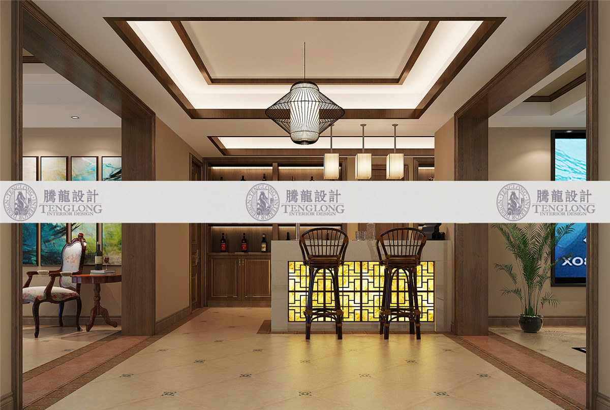 吧台 - 浦发博园别墅户型装修新中式风格设计方案展示,上海腾龙别墅设计师曹晖作品,欢迎品鉴