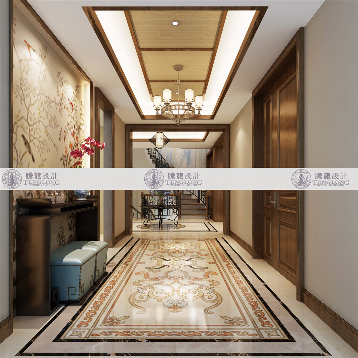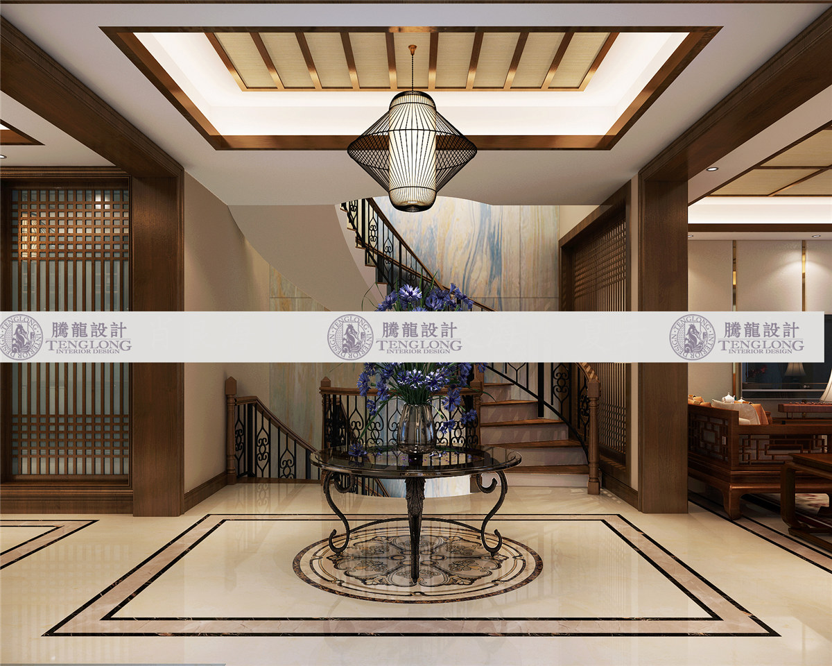 浦发博园门厅改 - 浦发博园别墅户型装修新中式风格设计方案展示,上海腾龙别墅设计师曹晖作品,欢迎品鉴