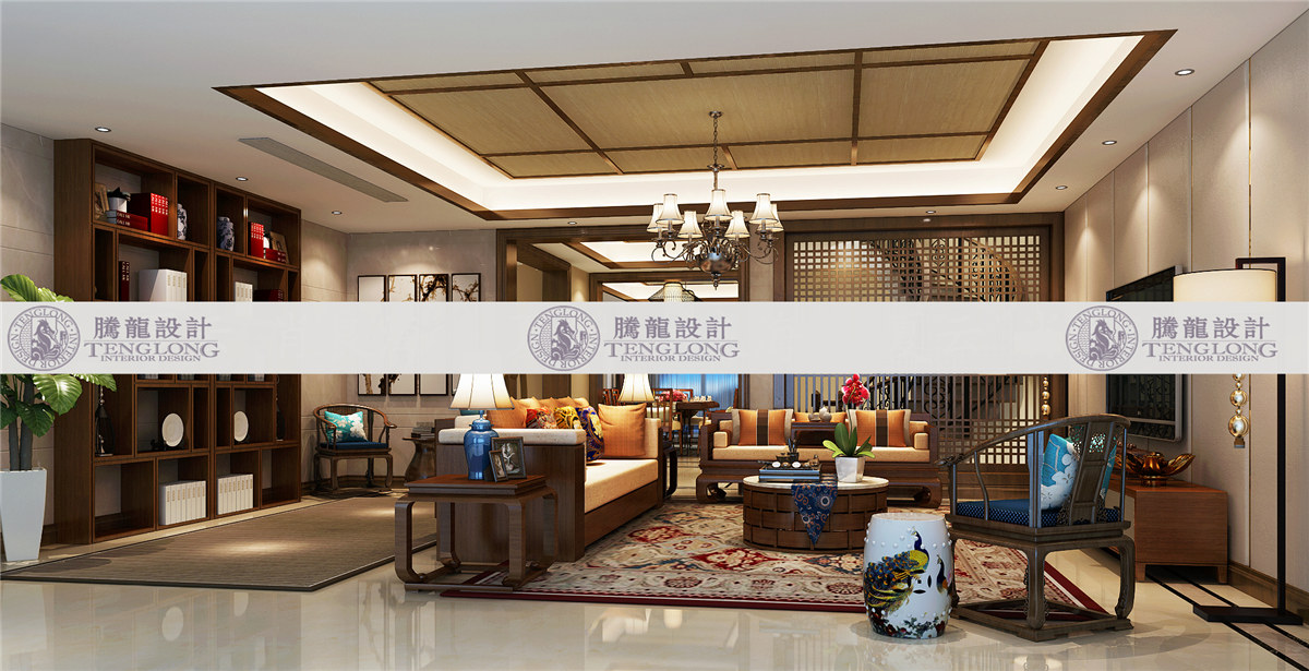 浦发博园客厅 - 浦发博园别墅户型装修新中式风格设计方案展示,上海腾龙别墅设计师曹晖作品,欢迎品鉴