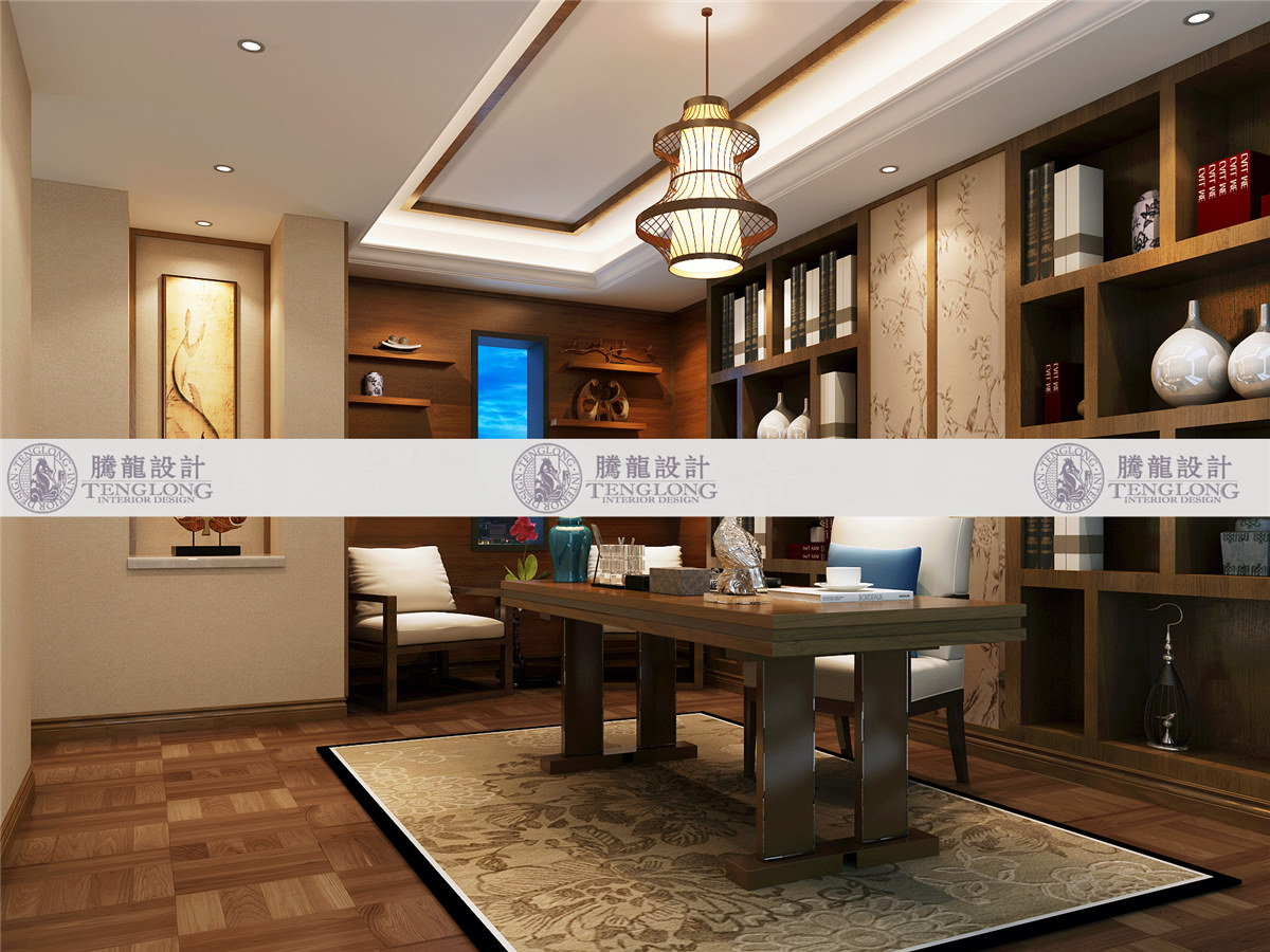 浦发博园书房 - 浦发博园别墅户型装修新中式风格设计方案展示,上海腾龙别墅设计师曹晖作品,欢迎品鉴