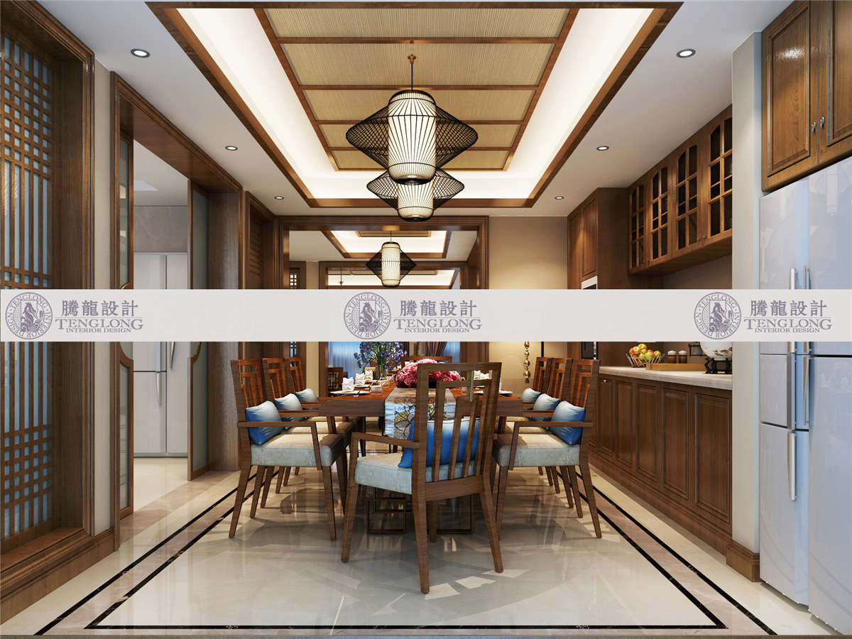 浦发博园餐厅改 - 浦发博园别墅户型装修新中式风格设计方案展示,上海腾龙别墅设计师曹晖作品,欢迎品鉴