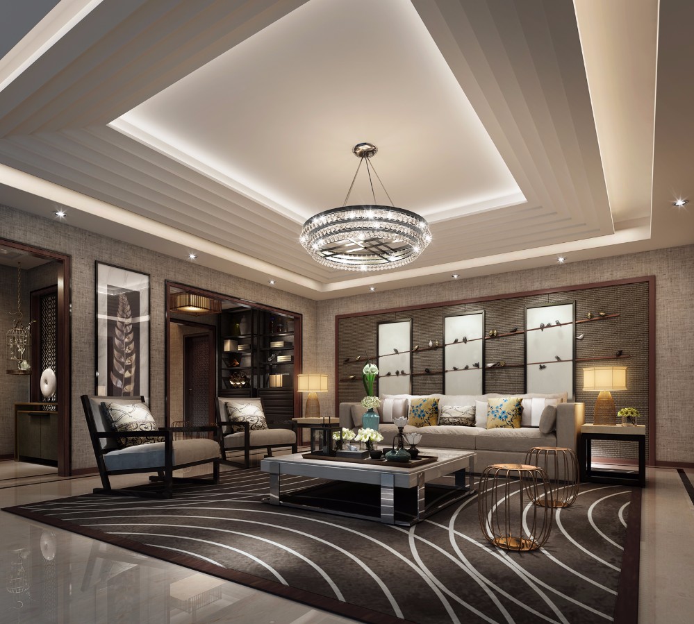客厅.jpg - 整体格调以中式为主,运用简约大气的手法,为业主营造一处经典、气派的中式居所。在空间与造型的处理上,尺度的把握恰到好处。以中式的语言元素及精湛的传统工艺来诠释设计师的理念,到处是丰富的、灵动的;