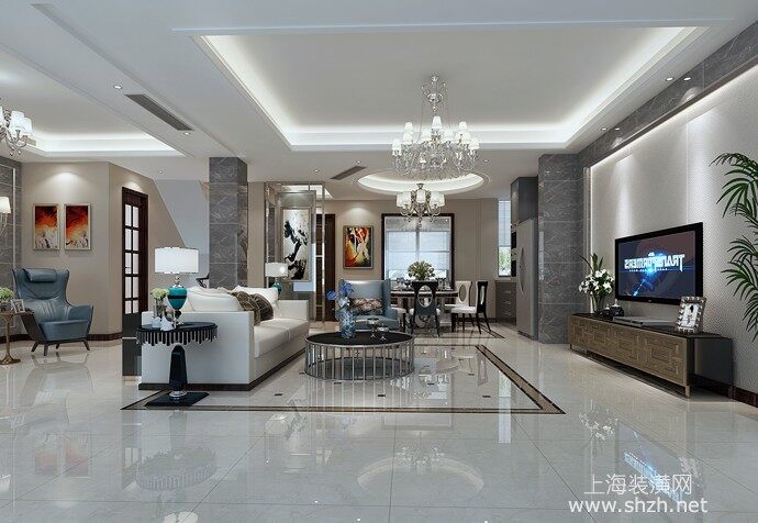 客厅 - 新弘墅园265㎡联排别墅的后现代风格装修是感性和理性,大众和个性,传统和现代相结合的家装设计,也是现代人深受喜爱的家装风格。后现代风格装潢具有历史的延续性,但又不拘泥于传统的方式,用创新的手法,人性化的表达方式,将古典的元素与现代化的风格相结合,营造出别样的风采。