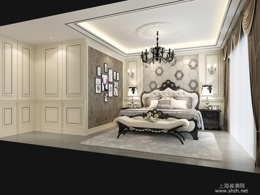 卧室 - 本案业主是位时尚达人,经常往返于澳门新加坡等地巡回演出。设计师以咖色为背景色,黑白灰等无彩色系为主基调,局部配以出挑的艳丽装饰作为点睛之笔,让整个空间典雅稳重之中凸显一点活泼俏皮。