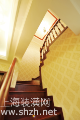 繁华世界的欧式风格,打造古典与自然结合的设计楼梯.png - 深红色的实木楼梯勾勒着空间轮廓,给人一种棱角分明的感受。采用木质柱形的扶手栏杆,表达出通透感,给视觉一抹透气。由于顶部吊顶的灯光,将光线散入空间,照亮周围,在暖黄色壁纸的衬托下,淡淡的温暖感流入人们心间。