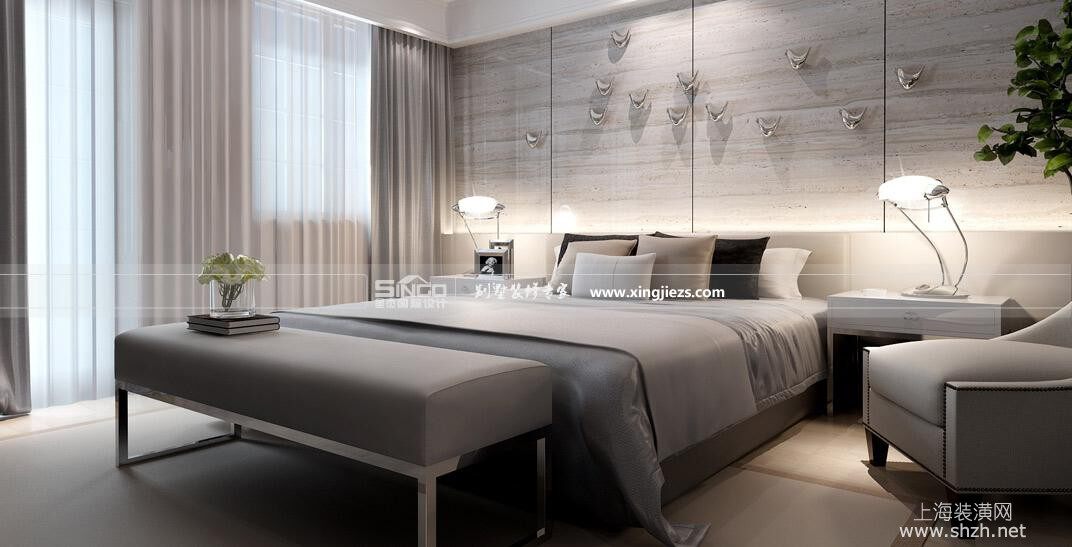 次卧效果图 - 次卧以灰色为基调,白色复调简约不失典雅。