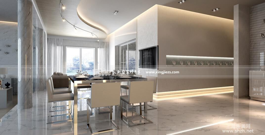 餐厅效果图 - 开阔大气的同时彰显着客户超前的品位,适当的运用一些大理石和进口瓷砖搭配,高档精致的材料去表现一些细节的处理