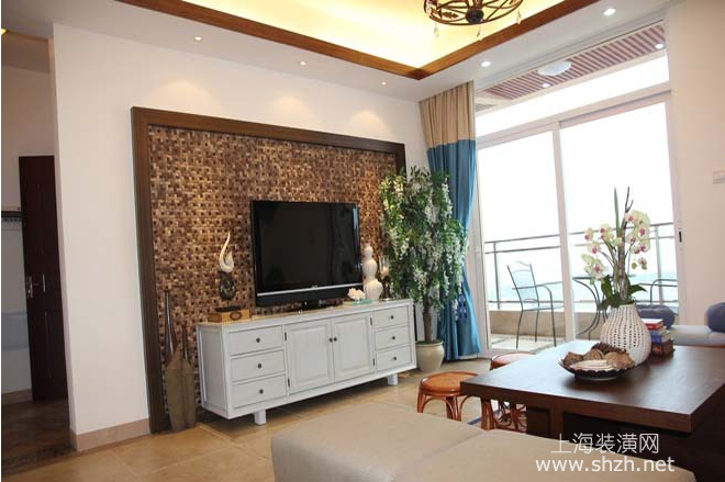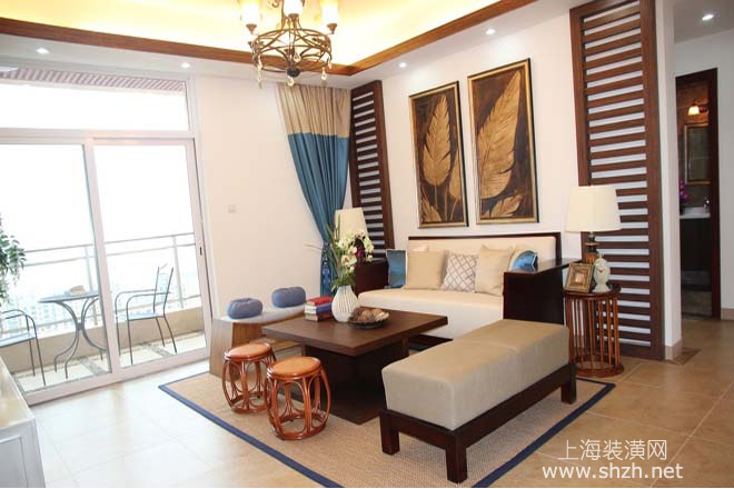 东南亚风格客厅.png - 这种风格的特点是原始自然、色泽鲜艳、崇尚手工。在造型上,以对称的木结构为主,在色彩上,以温馨淡雅的中性色彩为主,局部点缀艳丽的红色,自然温馨中不失热情华丽。