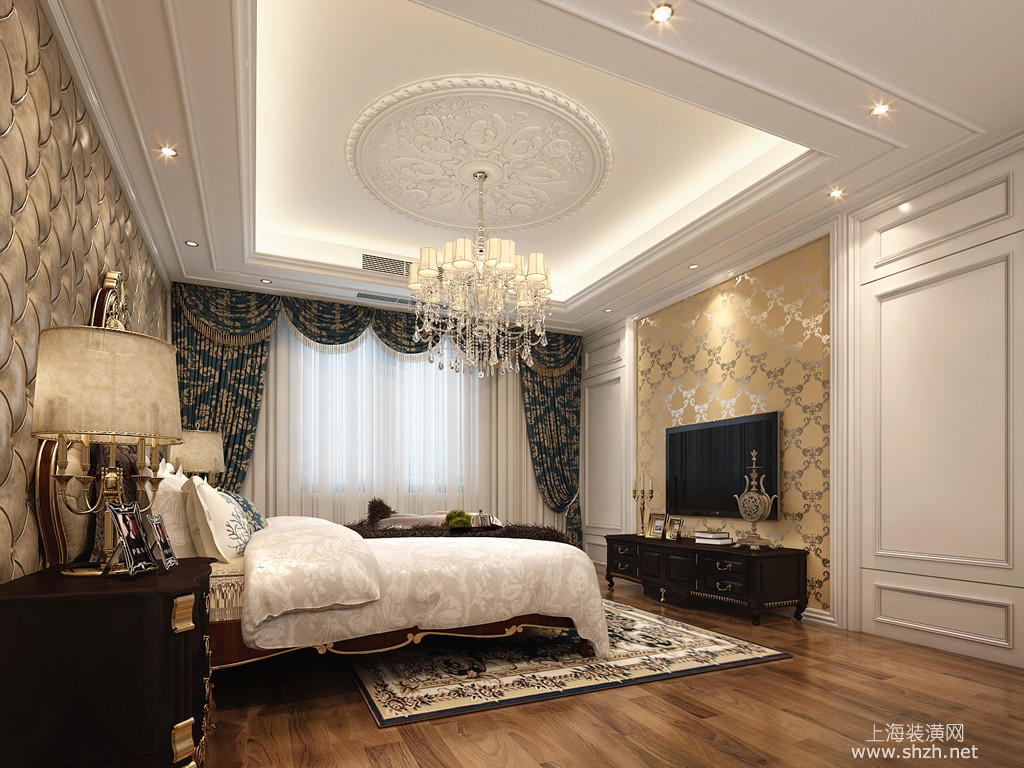 颐景园卧室.jpg - 整个空间弥漫着奢华与浪漫的气氛,硬朗的材质,明快的色彩、柔美的家具、雅致的配饰,赋予空间素净、明亮的神采。空间一方面保留了材质,色彩的大致风格,仍然可以很强烈的表现传统的历史痕迹与浑厚的文化底蕴,同时又摒弃了过于复杂的肌理和装饰,简化了线条。