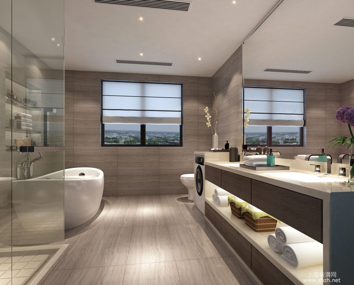 明泉璞院卫生间.jpg - 运用简洁的线条,柔和的色彩,将家居空间打造得清爽而极具现代感。复古的豪华沙发和几案延续米黄色简约,中间缀以蓝色沙发与脚凳。洁白的吊灯、悬于墙壁的水晶装饰物与相片,使得空间灵动起来,充满现代气息。多处摆放花盆与花瓶,使室内洋溢着温馨和舒适的自然气息。