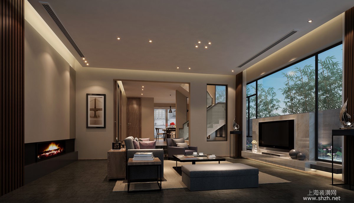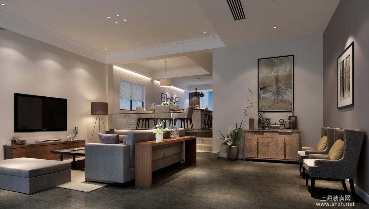 明泉璞院.jpg - 运用简洁的线条,柔和的色彩,将家居空间打造得清爽而极具现代感。复古的豪华沙发和几案延续米黄色简约,中间缀以蓝色沙发与脚凳。洁白的吊灯、悬于墙壁的水晶装饰物与相片,使得空间灵动起来,充满现代气息。多处摆放花盆与花瓶,使室内洋溢着温馨和舒适的自然气息。