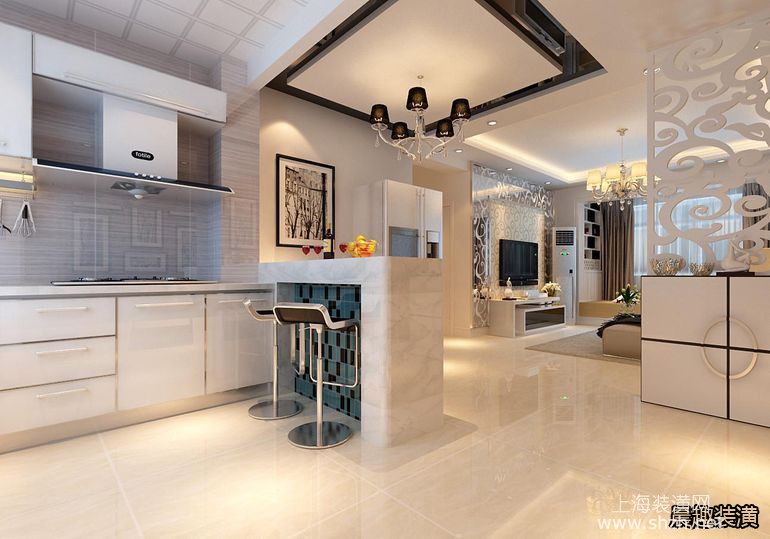 骏华苑厨房.jpg - 本方案的设计风格为北欧低调奢华,结合客户的生活习惯以及对家的要求设计了开敞式厨房和吧台。电视墙运用了花色玻璃满足了男主人对客厅的要求低调、时尚、大气,同时从视觉上增加了客厅的宽度。沙发采用的浅咖布艺沙发,自然舒适,经久耐用,阳台榻榻米的设计,增加了孩子的玩耍区,以及家长的休闲工作区,可以说是多功能区。卧室同样采用浅咖色调,优雅,温馨。