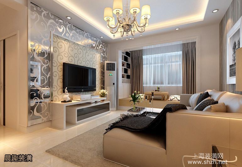 骏华苑客厅.jpg - 本方案的设计风格为北欧低调奢华,结合客户的生活习惯以及对家的要求设计了开敞式厨房和吧台。电视墙运用了花色玻璃满足了男主人对客厅的要求低调、时尚、大气,同时从视觉上增加了客厅的宽度。沙发采用的浅咖布艺沙发,自然舒适,经久耐用,阳台榻榻米的设计,增加了孩子的玩耍区,以及家长的休闲工作区,可以说是多功能区。卧室同样采用浅咖色调,优雅,温馨。