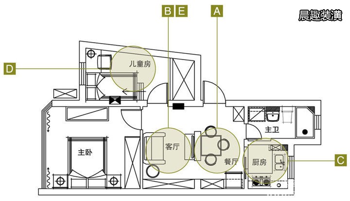 梅园五街坊设计图.jpg - 本案是旧屋改造,原本一室一厅在保证承重要求的情况下改为两房两厅。风格上采用的是女主人 中意的田园风。整体以突出功能为重点,使各区域互相联接又保持独立。小空间的改造,各处都 达到了极致。