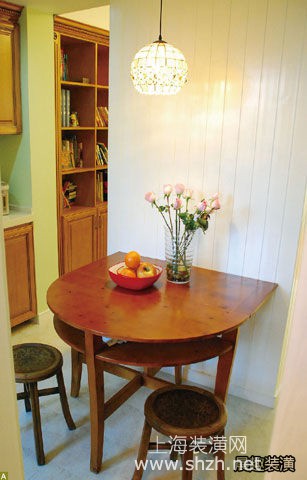 梅园五街坊餐桌.jpg - 本案是旧屋改造,原本一室一厅在保证承重要求的情况下改为两房两厅。风格上采用的是女主人 中意的田园风。整体以突出功能为重点,使各区域互相联接又保持独立。小空间的改造,各处都 达到了极致。