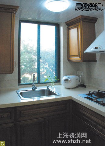 梅园五街坊厨房.jpg - 本案是旧屋改造,原本一室一厅在保证承重要求的情况下改为两房两厅。风格上采用的是女主人 中意的田园风。整体以突出功能为重点,使各区域互相联接又保持独立。小空间的改造,各处都 达到了极致。