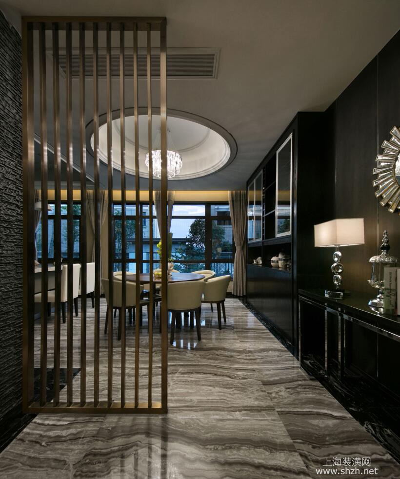餐厅 - 业主喜欢较为安静的居住环境,最初定位为中式风格,但是业主不是很喜欢太过中式的感觉,通过与客户的反复沟通与交流,决定运用黑白灰的搭配、融入少量的中国元素、用现代的手法来完成本项目,最终将设计定位为——私享静谧。
