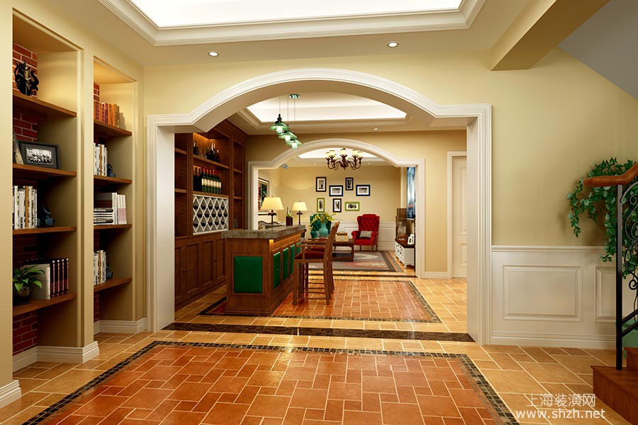 长泰东郊案例欣赏厅廊.jpg - 整体色调搭配彰显自由随意、简洁怀旧、实用舒适,怀旧的情感、浪漫的工艺是美式家具的最大特点。