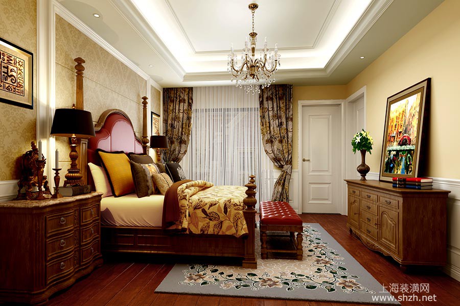 长泰东郊案例欣赏卧室.jpg - 美式家具传达了单纯、休闲、随性、舒服的风格,让家庭成为释放压力和解放心灵的净土,所以美式家具大部分很宽大、宽敞,让人一见就有家的感觉。