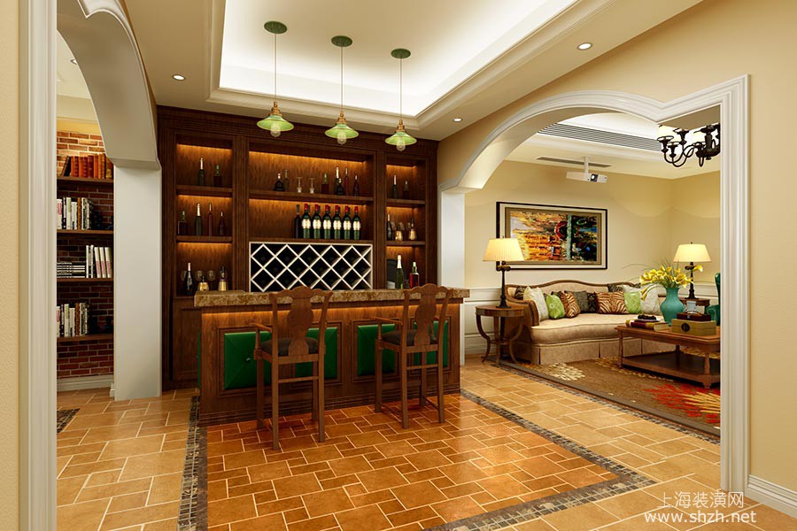 长泰东郊案例欣赏吧台.jpg - 美式风格分两种,一是乡村风格,一是美式田园风格;而欧式风格又很多种,多数以复古华丽为主,属于中高档装修类别。并且,欧式的偏严谨和奢靡,美式则偏田园散漫。