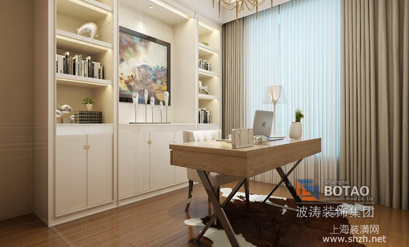 宝华海尚郡领书房.jpg - 家具突出强调功能性设计,设计线条简约流畅,家具色彩对比强烈。