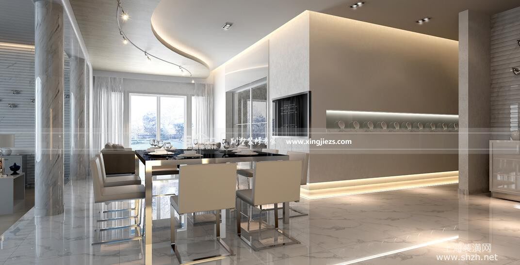 长岛别墅设计装修效果图餐厅.jpg - 适当的运用一些大理石和进口瓷砖搭配,高档精致的材料去表现一些细节的处理,体现一种现代生活理念。