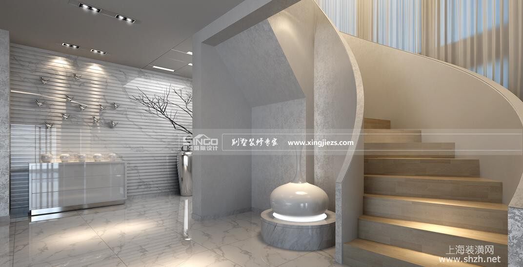 长岛别墅设计装修效果图楼道.jpg - 通过提取传统家居的精华元素和生活符号进程合理的搭配、布局,在整体的家居设计中时尚实用又更多的体现了现代人居住的生活特点。