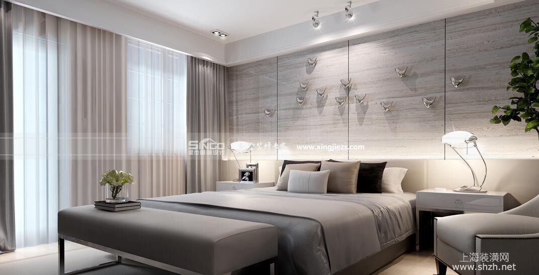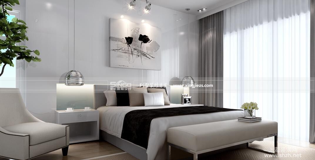 长岛别墅设计装修效果图次卧.jpg - 注重饰品的不拘一格,一些线条简单,设计独特甚至是极富创意和个性的饰品都可以成为现代简约风格家具中的一员。
