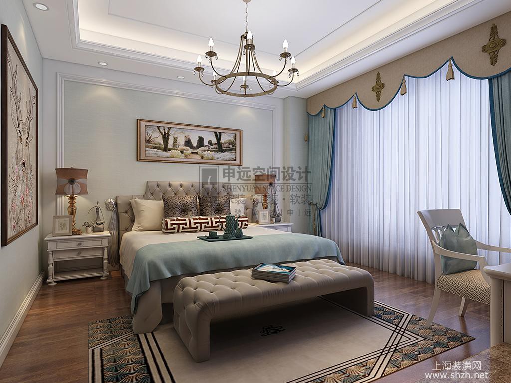 湖畔天下卧室.jpg - 色彩以自然色调为主,土褐色最为常见;壁纸多为纯纸浆质地;家具颜色多仿旧漆,式样厚重。