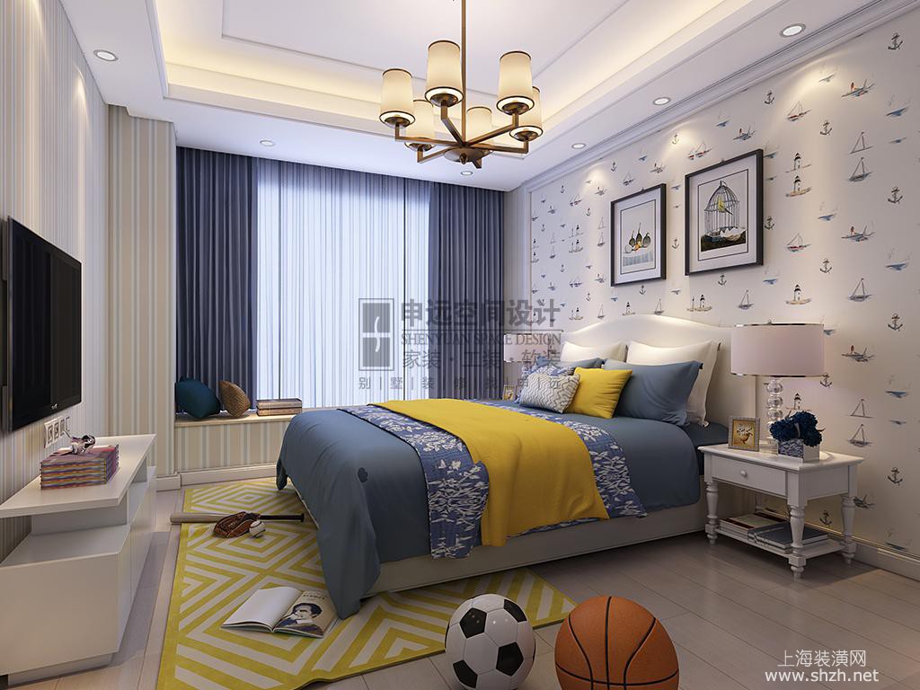 湖畔天下儿童房.jpg - 墙面色彩选择上,自然、怀旧、散发着浓郁泥土芬芳的色彩是美式乡村风格的典型特征。