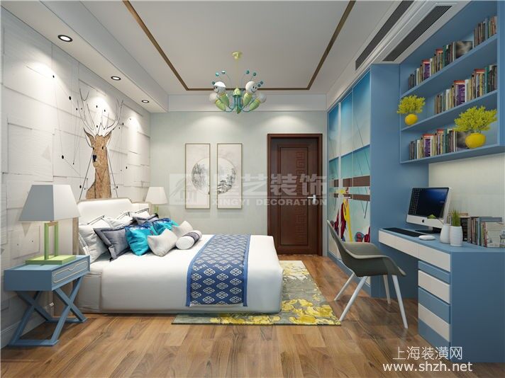 小孩房.jpg - 现代中式在家庭装修中的比重在提升,已经是别墅大宅不可或缺的设计风格,其集合品味与艺术为一身,给人们第一眼的感觉就是低调及内涵。本案运用了大量的成品定制花格来营造出中式特有的文化韵味,借助茶镜及茶钛的点缀,整体提亮空间,增加时尚气息。整体色调才用暖色调,营造出温馨的家庭氛围。