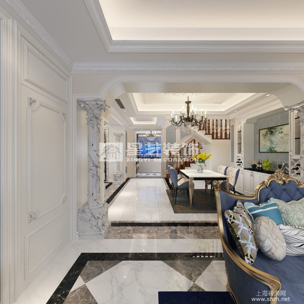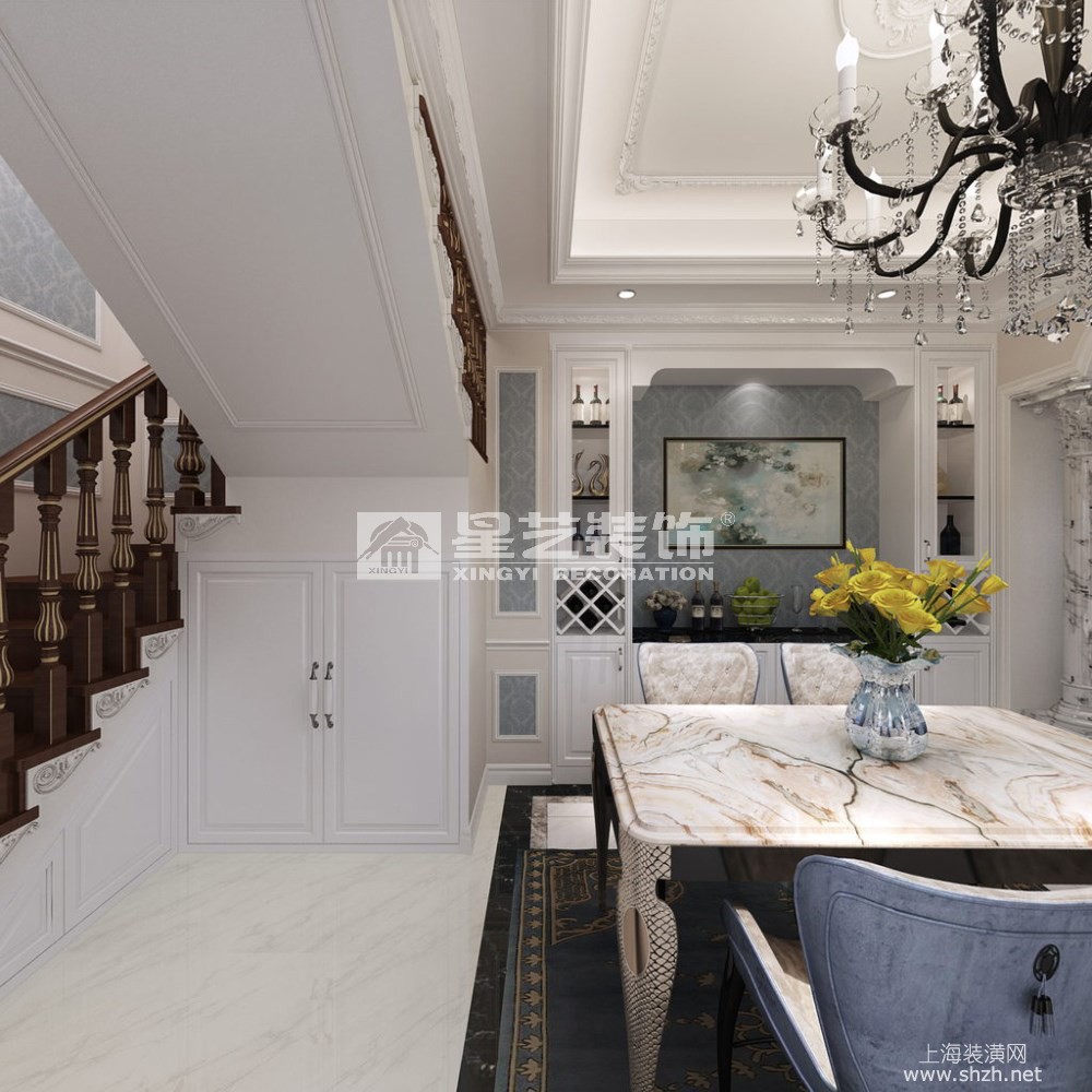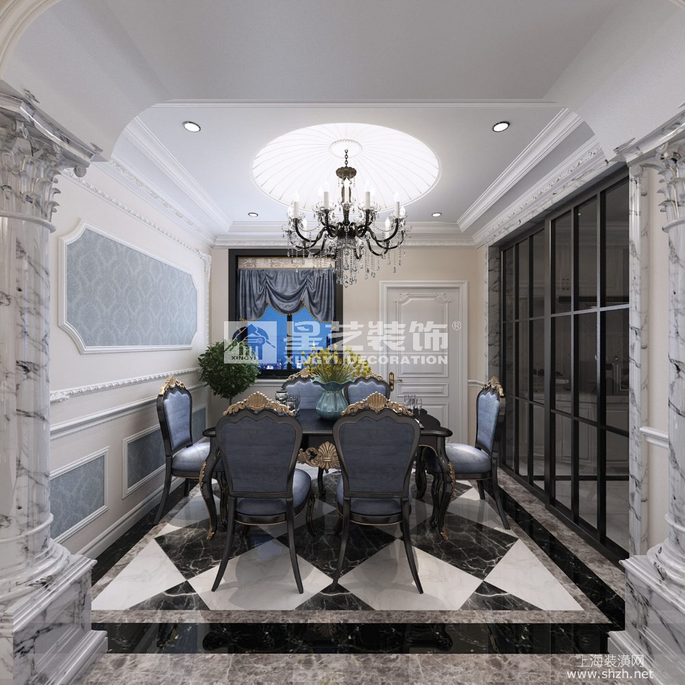 布局上突出轴线的对称,恢弘的气势,豪华舒适的居住空间。贵族风格,高贵典雅。细节处理上运用了法式廊柱、雕花,线条,制作工艺精细考究。点缀在自然中,崇尚冲突之美。建筑多采用对称造型,屋顶上多有精致的老虎窗,餐厅秉持典型的法式风格搭配原则,餐桌和餐椅均为米白色,表面略带雕花,配合扶手和椅腿的弧形曲度,显得优雅高贵,而在白色的卷草纹窗帘、水晶吊灯、落地灯、瓶插百合花的搭配下,浪漫清新之感铺面而来。