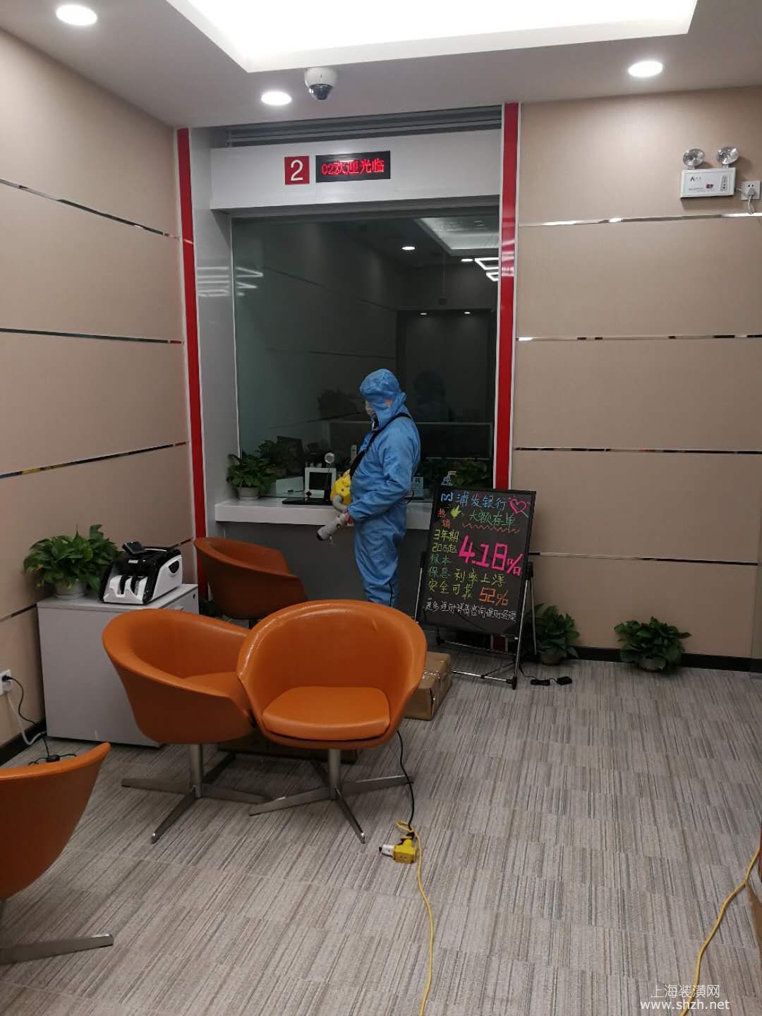 上海浦发银行松江支行 - 上海浦发银行-松江支行 共2层,1500平方米 新装修后为了员工客户的健康,银行高层决定全面室内空气净化。上海家昱环保治理一次治理施工2遍,墙面、地面、天花板、办公桌椅全面治理。治理施工后室内空气质量达到国家规定的标准《室内空气质量标准(GB50325-2010)》
