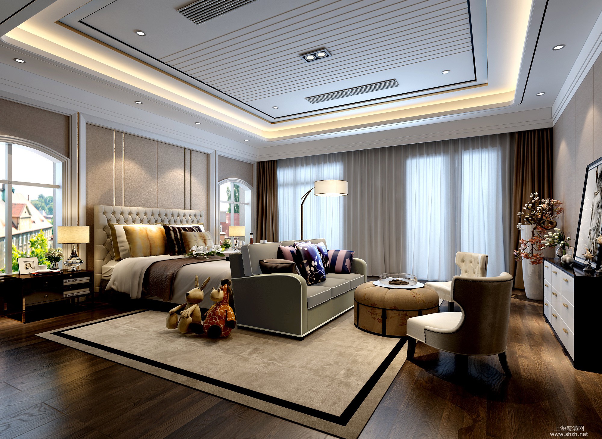 卧室 - 白金瀚宫别墅项目装修现代轻奢风格设计案例展示,上海腾龙别墅设计作品,欢迎品鉴